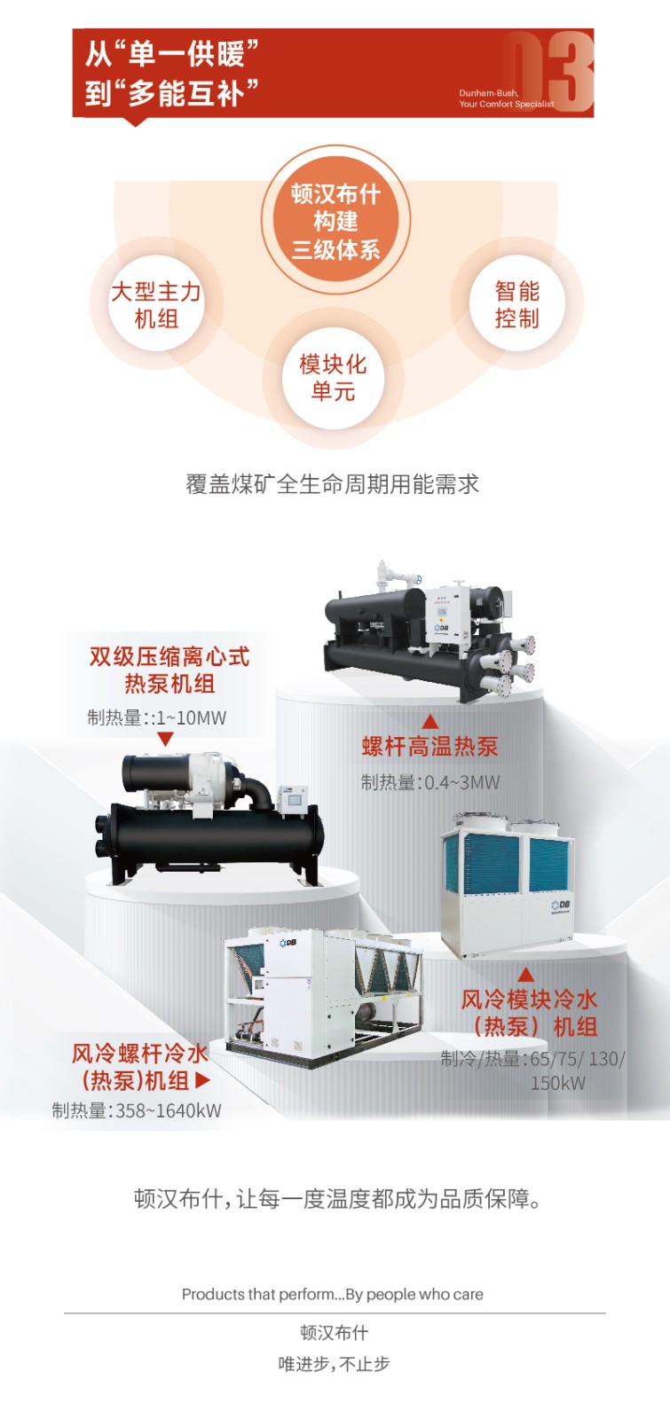 1995年,頓漢布什中國(guó)在煙臺(tái)設(shè)立研發(fā)中心和制造工廠,產(chǎn)品線包含壓縮機(jī)、大型冷水、熱泵機(jī)組、空氣側(cè)換熱產(chǎn)品、小型商用空調(diào)機(jī)組、低溫冷凍機(jī)組、冷卻塔等。